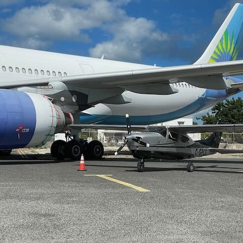 Meanwhile, in the back of my mind, YouTube videos of airplanes landing in St. Barths were on repeat. I had heard about this unique airstrip before – one member of our flying club at home had flown there from St. Martin with a rented aircraft a flight instructor years prior. His story captivated me, and I never forgot it. I read up about it, learning that certification is required to land there, and I watched the YouTube videos to imagine how my 210 would handle that approach. I had to find out if I could do it, and add that certification notch to my aviation belt. Between filling out forms and figuring out where we could get just the right Covid test in just the right timeframe, I began to search for certification training providers for landing at St. Barths. I quickly found the St. Martin Aeroclub, based at Grand Case Airport (TFFG), on the French side of St. Martin. I sent an email and got a reply within a day, and confirmed that training would be available in the right timeframe. I booked it and we had our final destination for our Caribbean journey firmly in sight. We stopped for three days in Samana, Dominican Republic, and on January 15, flew to one of the places I had always dreamt of flying to, making that epic approach over Maho Beach, gracing the tourists on the beach below. We landed at Princess Juliana Airport, Dutch Sint Maarten.